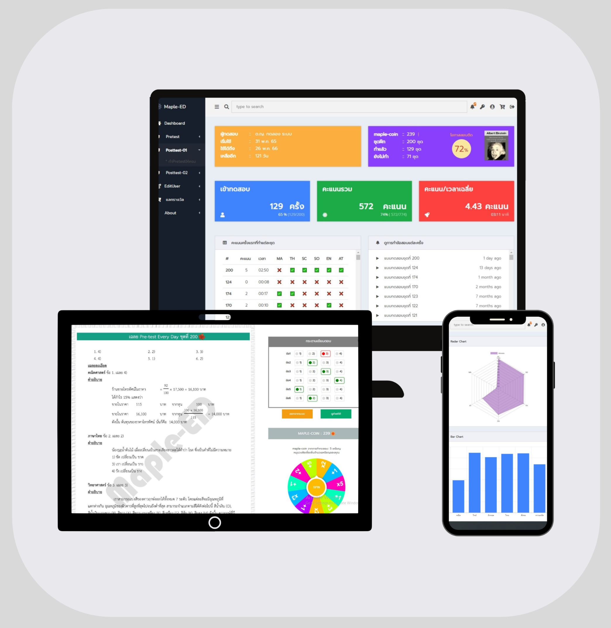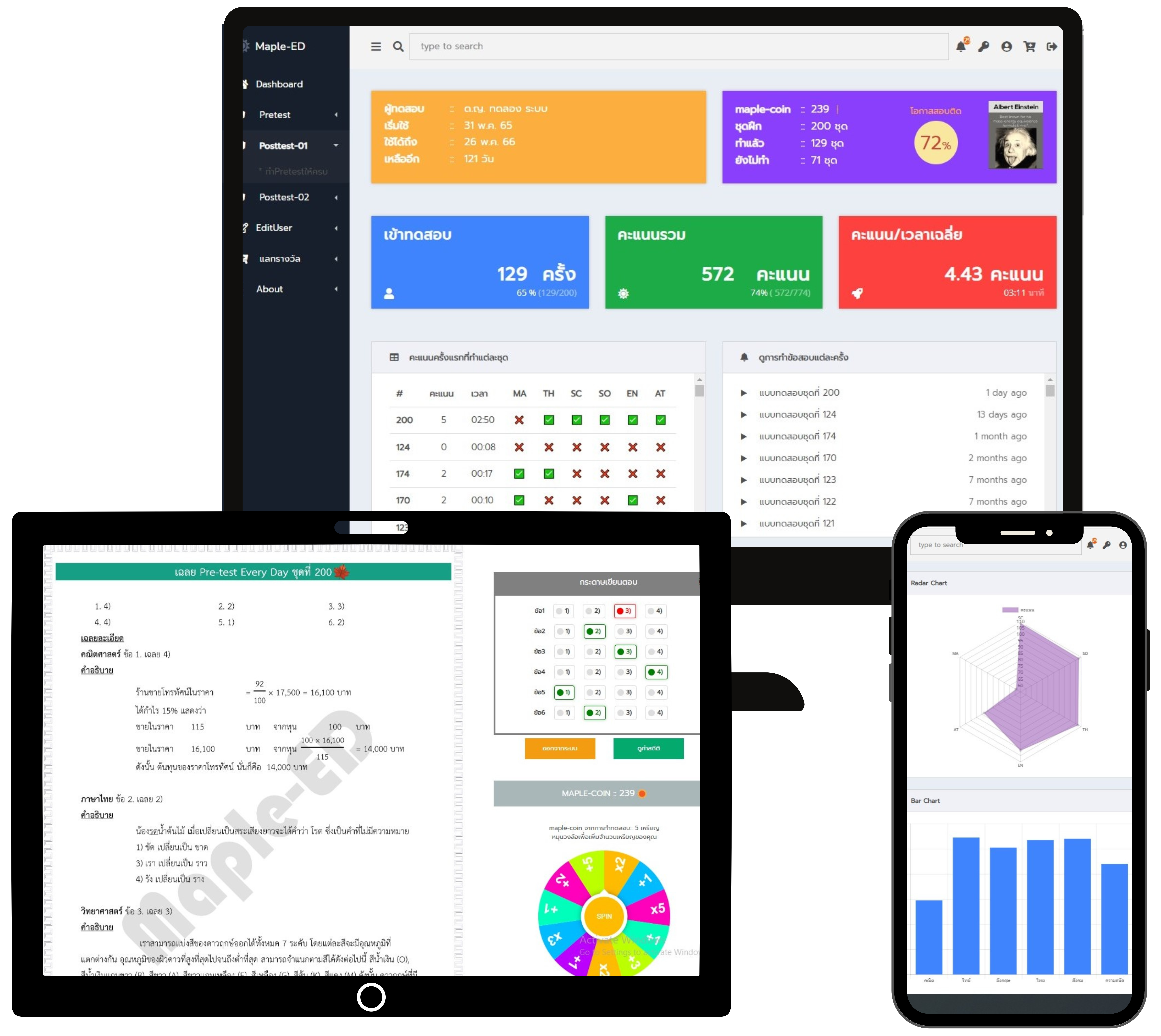 เก็บค่าสถิติต่างๆ แยกตามวิชา และหน่วยย่อยของแต่ละวิชา พร้อมระบบคำนวณโอกาสที่นักเรียนจะสอบเข้า ม.1ได้สำเร็จ