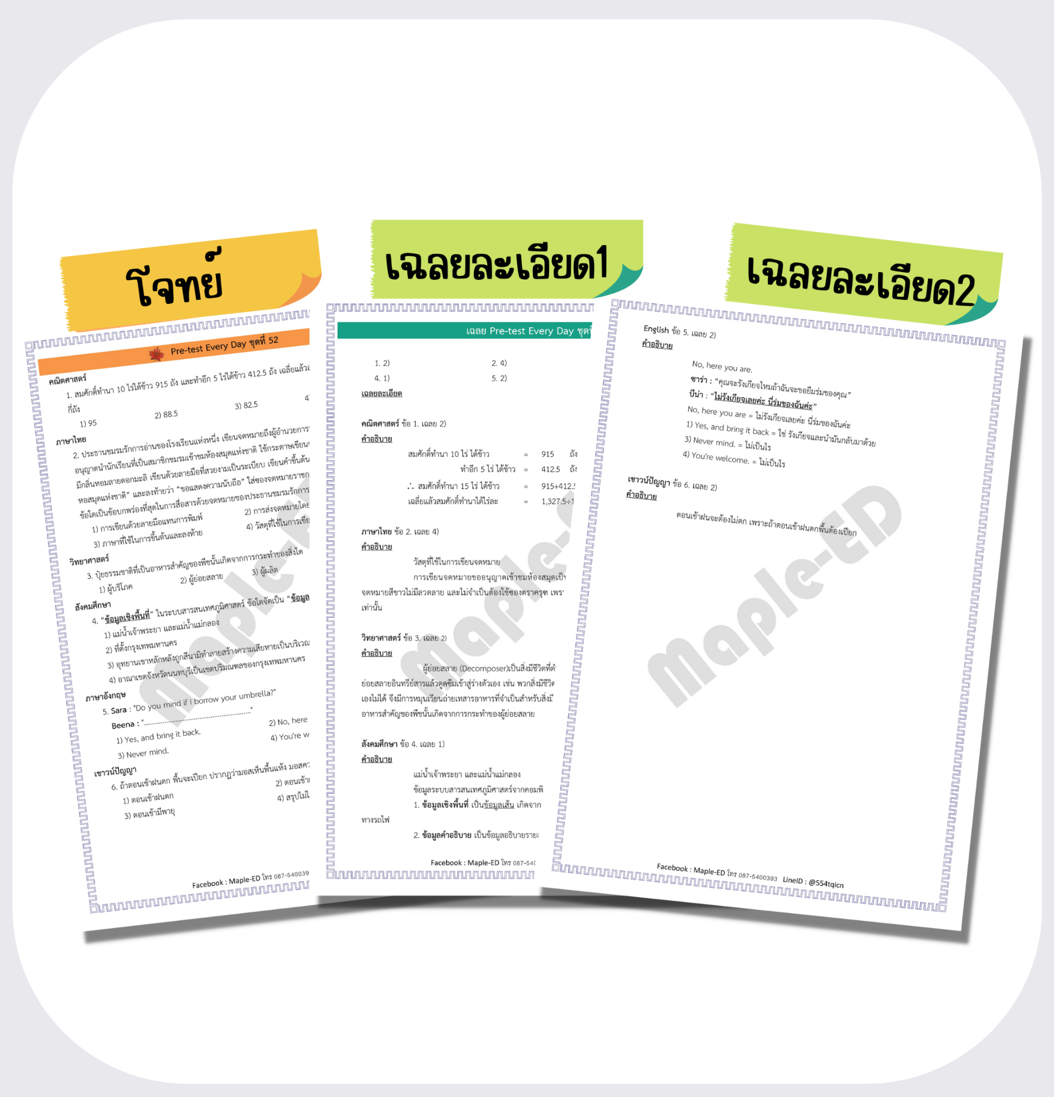 Pretest Every Day คือ โปรแกรมสำหรับเตรียมตัวสอบเข้า ม.1 : 6 วิชา รวบรวมข้อสอบและแนวข้อสอบจากโรงเรียนดังมากกว่า 1,800 ข้อ